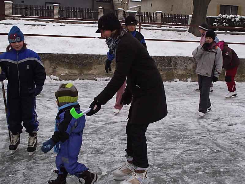 BRUSLENÍ V neděli 11. ledna 2009 po obědě se na zamrzlém kale sešli dospělí a děti, aby si užili sportovní odpoledne na ledě. Muži obuli brusle, rozdělili se na tým starších a mladších a na velkém kale mezi sebou sehráli téměř profesionální zápas, který soudcoval neúplatný rozhodčí Vašek Tomášek. Oběma týmům fandily sličné roztleskávačky, které hlasitě komentovaly průběh utkání. Štěstí se nakonec přiklonilo na stranu starších, kteří o jeden gól porazili soupeře. Po dospělých si hokej zahráli mladí hlavnovští kluci společně s místními i přespolními děvčaty. Na malém kale zatím soutěžily děti ve slalomu na bruslích, jízdě pozadu, či střelbě na branku. Pro všechny soutěžící i fanoušky byly připraveny teplé nápoje, které v mrazivém odpoledni přišly všem k chuti.