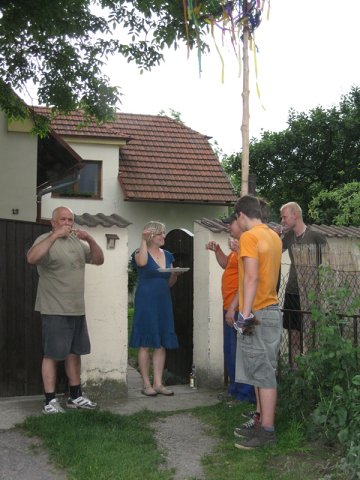 Hlavnovské máje Po dlouhých sedmnácti letech se ve Hlavně opět konaly máje. Ve čtvrtek dojeli silní muži do lesa pro smrk, v pátek jej krásné ženy ozdobily a za pomoci techniky byla májka vztyčena na návsi. A v sobotu, úderem třetí hodiny, zahájil vladyka Suda hlavnovské máje poté, co dostal od starostky obce svolení k pořádání májů a převzal vládu nad vsí. Průvod prošel celou vesnicí, družina vladyky Sudy kráčela v čele průvodu společně s dětmi nesoucími svoji májku. Nechyběli ani členové místních spolků - hasiči, myslivci, zahrádkáři a samozřejmě místní lidé. Juchači navštívili každý dům s přípitkem a do kroku všem vyhrávali muzikanti z kapely Přívoranka. Na závěr zatančily děti na návsi májové tanečky. Velké poděkování patří všem, kteří pomáhali máje připravit, dále všem lidem, místním a přespolním, kteří se jich zúčastnili, přišli do průvodu a pomohli tak obnovit jednu krásnou tradici. Tak snad zase za rok ve Hlavně na májích…