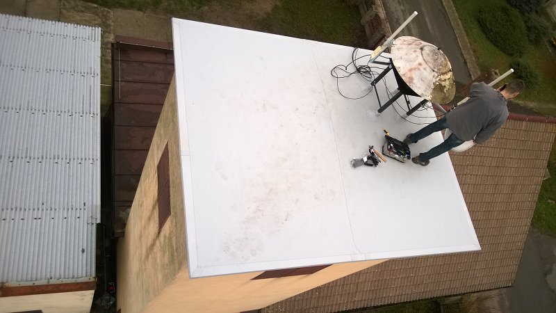 Oprava střešního pláště věže u hasičské zbrojnice. Při opravě střechy hasičské věže byl vyměněn také držák sirény. Současně byly pořízeny fotografie zachycující Hlavno z výšky. Autor fotografií a současně zhotovitel nové střešní krytiny: David Háša